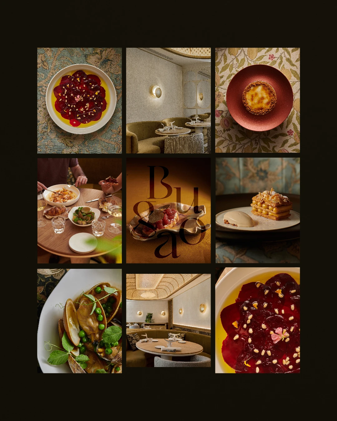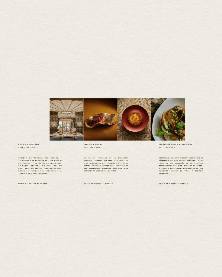In the heart of Madrid, Bugao honors origin and product through a unique culinary vision rooted in chef Hugo Ruiz’s Ceutan heritage. His cuisine blends technique with emotion and a deep respect for seasonal ingredients. The brand avoids coastal clichés, opting instead for organic textures, noble materials, and subtle nods to the South’s cultural richness.Its identity is refined and minimalist. A custom logotype with fluid ligatures evokes the sea, supported by a sober yet distinctive typographic system. From menus to interiors, every detail connects tradition and modernity, crafting a visual story between Ceuta and Madrid.