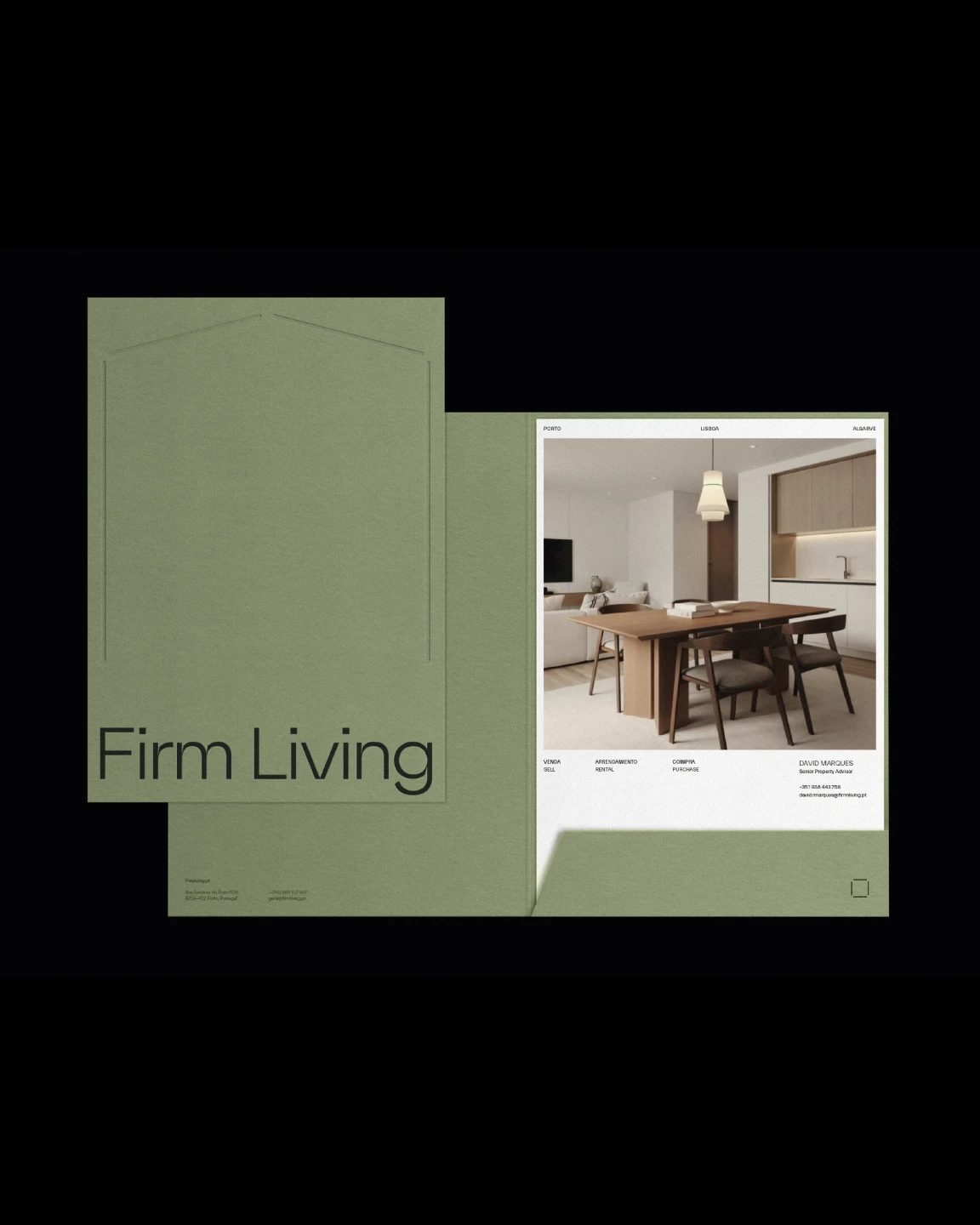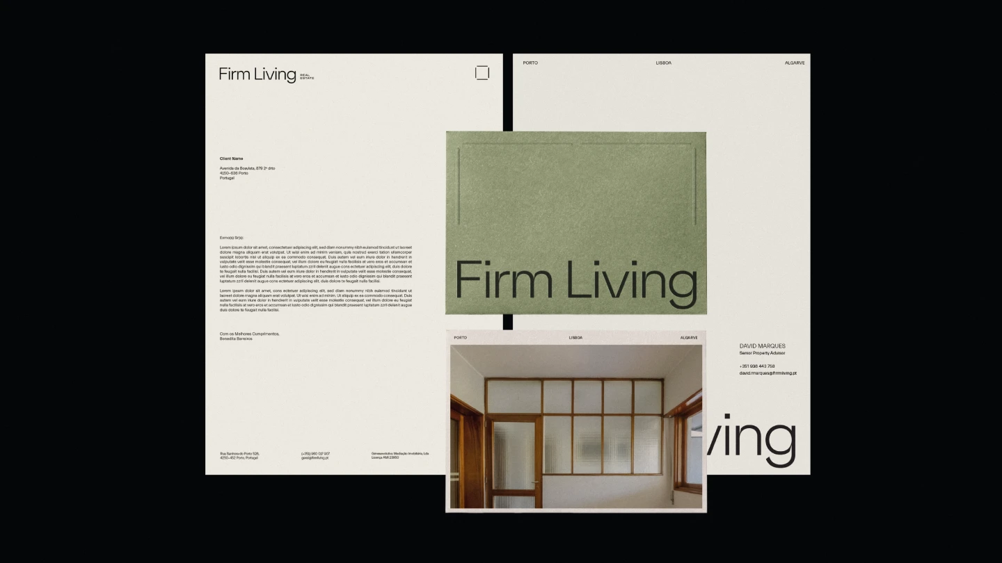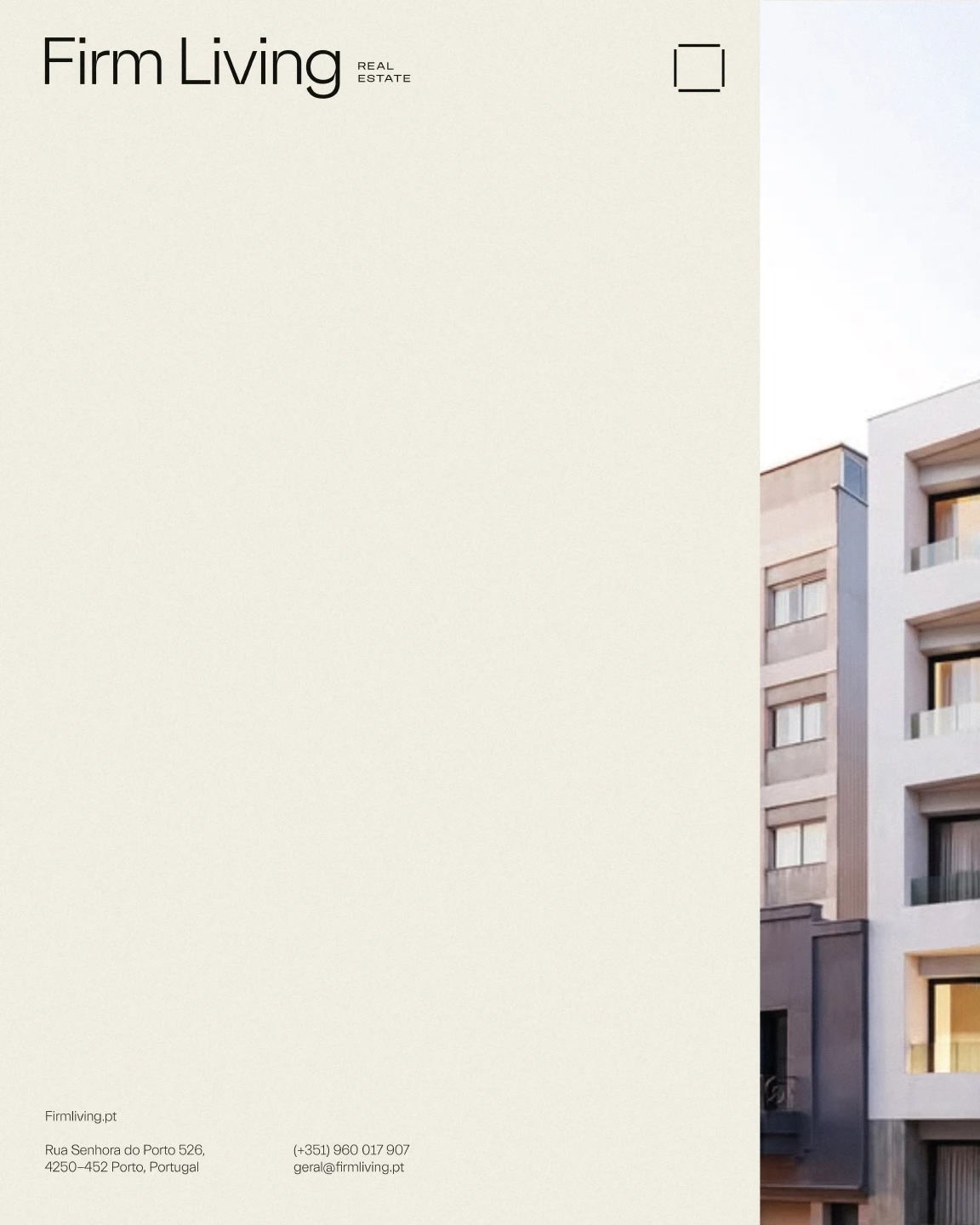 Firm Living is a real estate agency specializing in the sale of luxury properties in Porto, offering an exclusive and personalized experience. Its minimalist visual identity, enriched with icons and graphic resources, adds sophistication and distinction, reflecting its commitment to elegance and functionality. With a highly qualified team, it provides a comprehensive service that covers everything from property evaluation to the purchase and sale of real estate.
