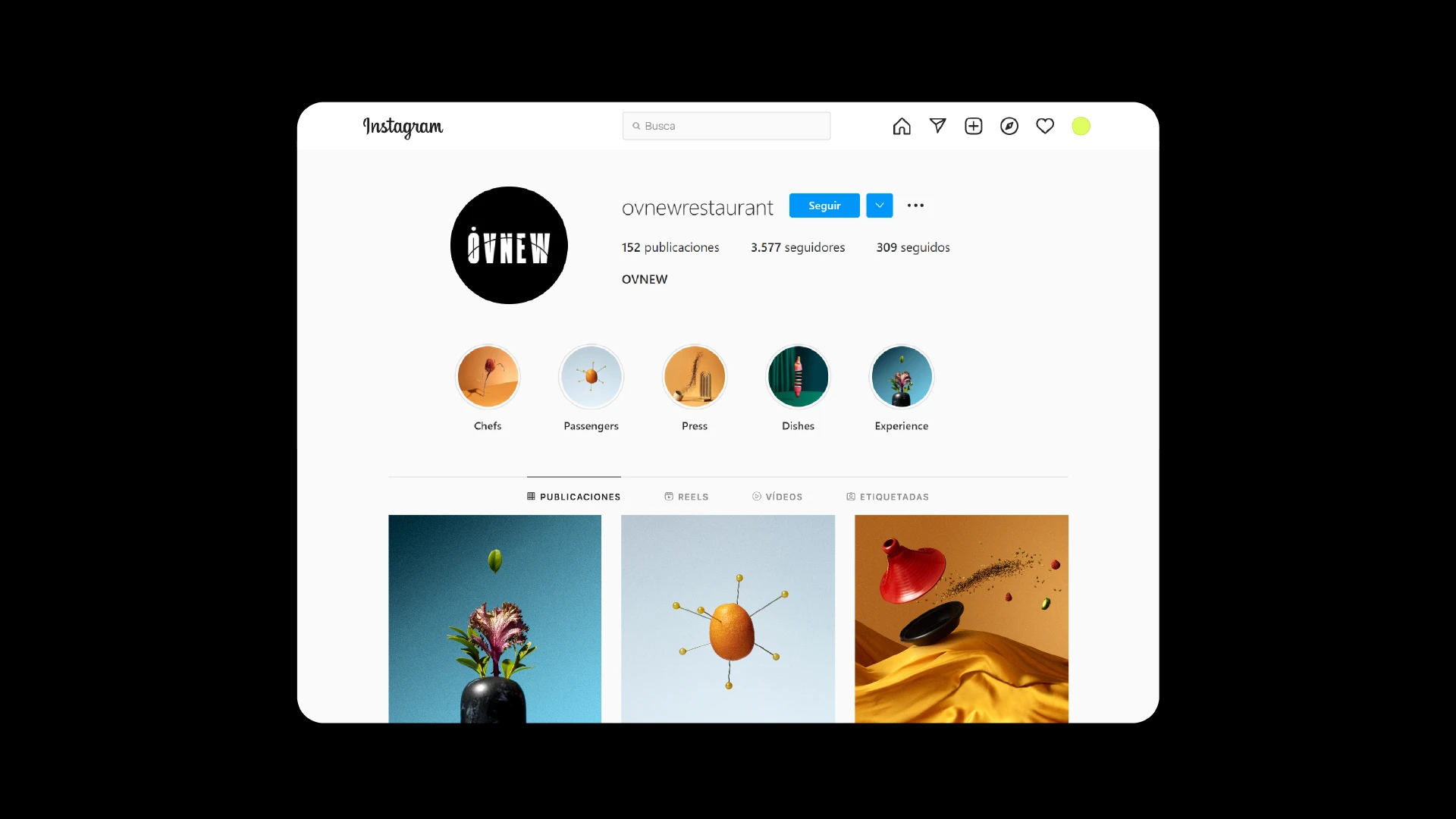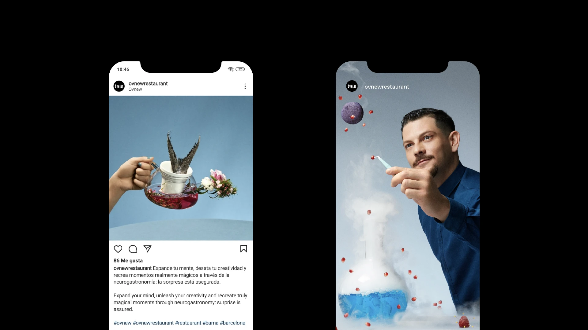 Ovnew is a restaurant proposal that brings together Self-knowledge through an evocative and revealing sensory experience emotions, senses, sensations. It proposes a journey to another plane of reality, a change of prism and we enter the world of the senses, changing our relationship with them. They wanted to create a visual concept that would bring together the whole restaurant experience for the launch of Ovnew on social media.